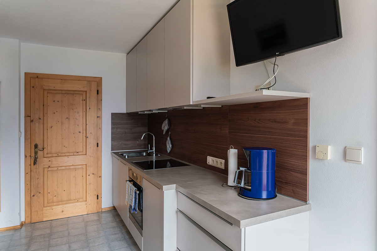 Appartamento luminoso e accogliente con ampio balcone e vista mozzafiato sulle cime delle Dolomiti.