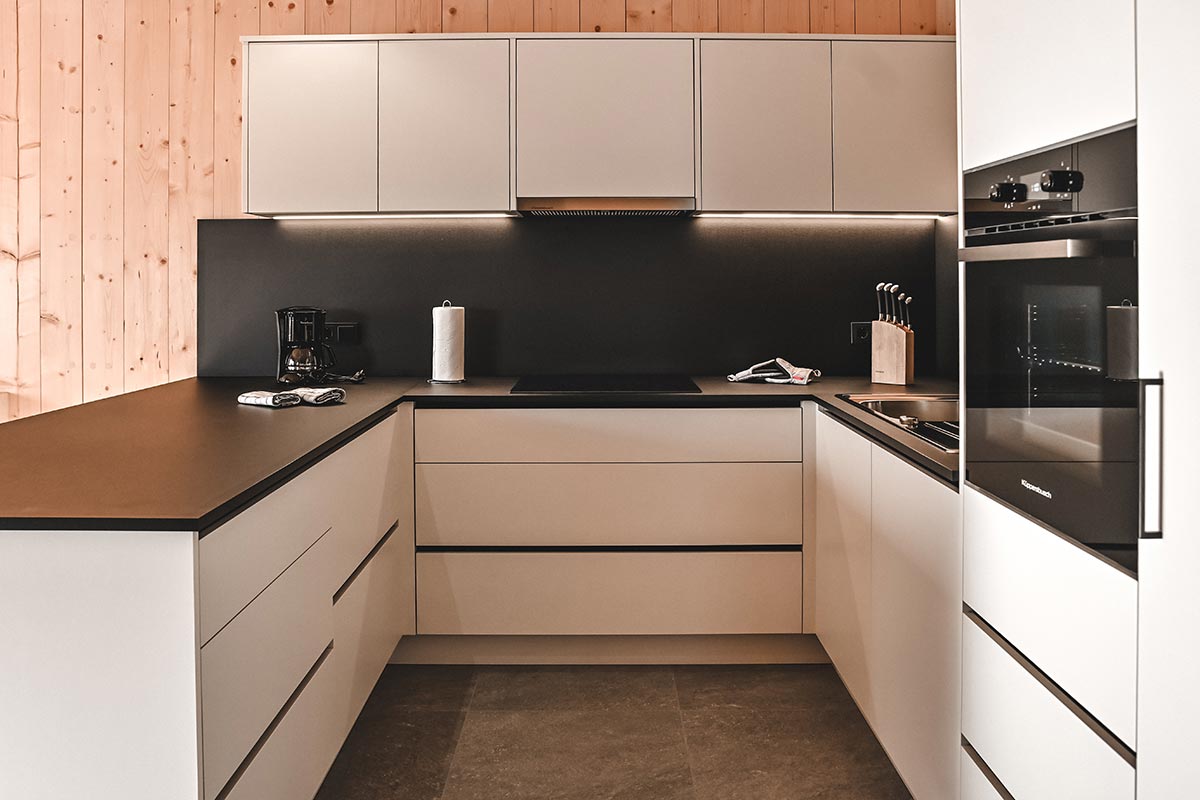• Cucina completamente arredata e attrezzata: frigorifero con congelatore, piano cottura, forno, lavastoviglie, macchina per il caffè, stoviglie e pentole.