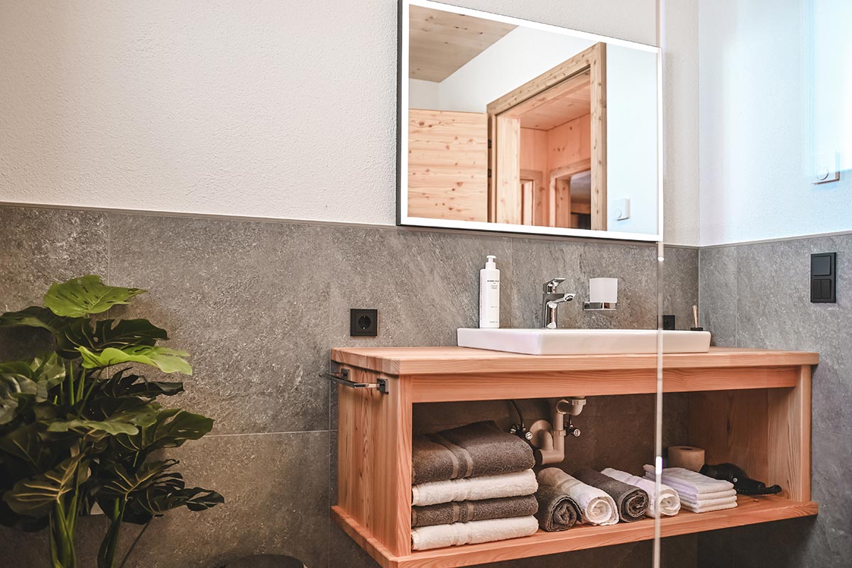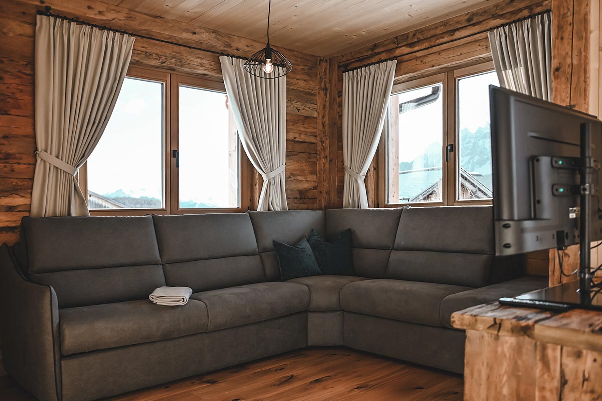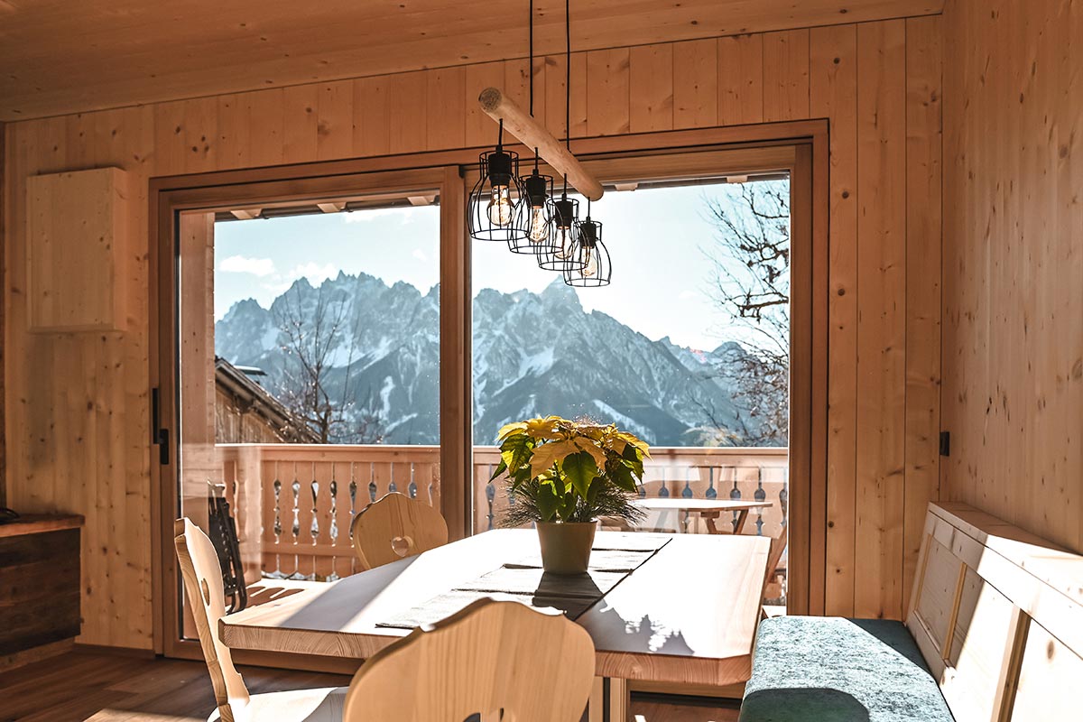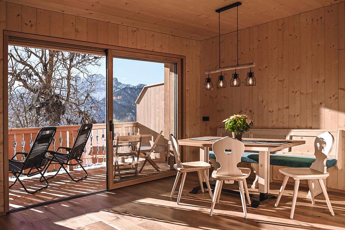Materiali naturali – spazioso – arredato con cura – con balcone esposto a sud e vista mozzafiato su Dobbiaco e sulle Dolomiti.